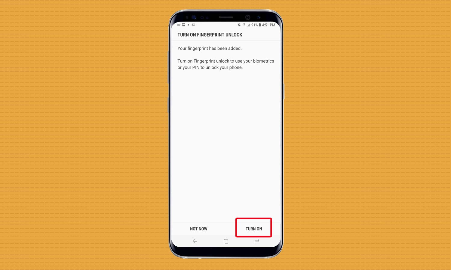 7. On the adjacent screen, select Turn On to enable fingerprint recognition.